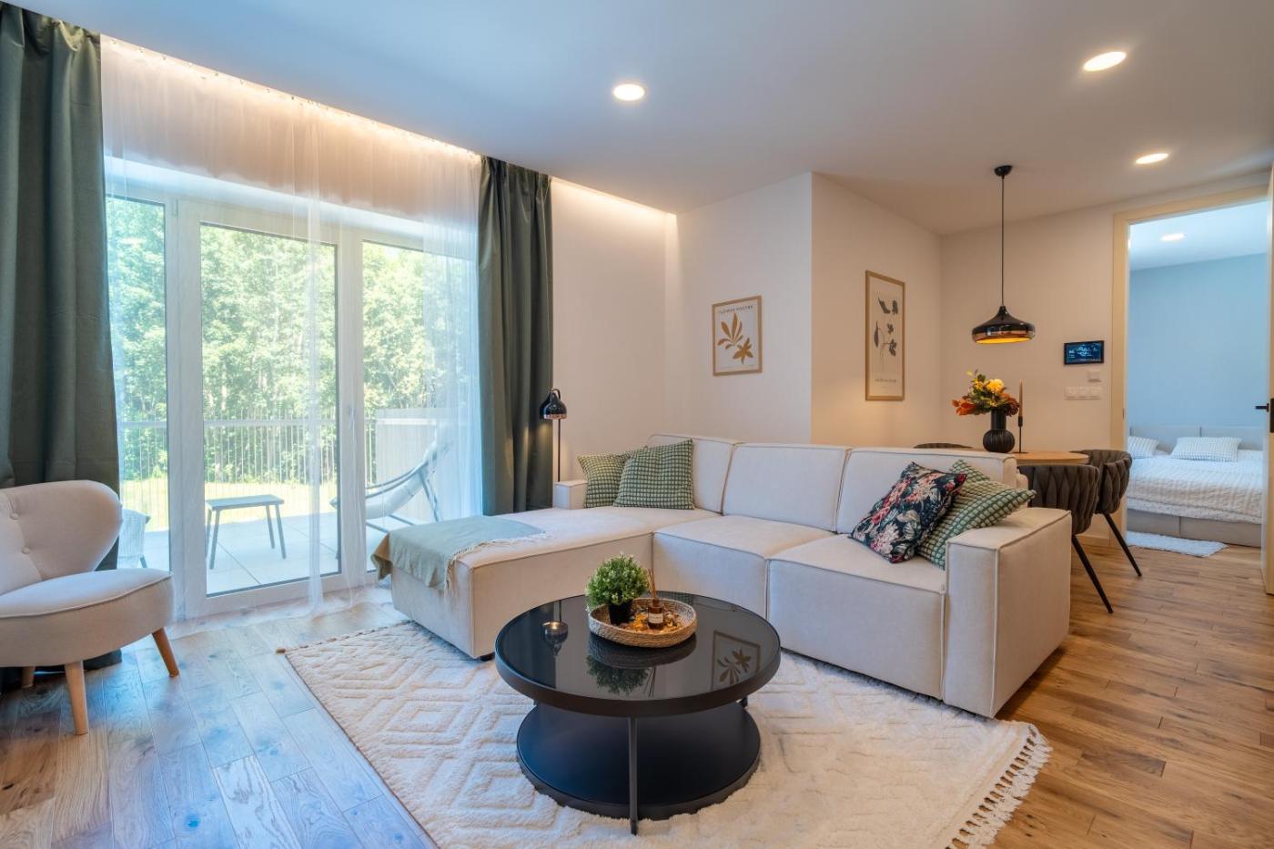 One-Bedroom Apartment. The sauna is a top feature of this apartment. Boasting a private entrance, this apartment comes with 1 living room, 1 separate bedroom and 1 bathroom with a walk-in shower and a bath or a shower. The well-fitted kitchen has a stovetop, a dishwasher, kitchenware and a microwave. Featuring a terrace with garden views, this apartment also features a washing machine and a flat-screen TV with satellite channels. The unit has 2 beds.